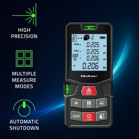 Qoltec Natančni digitalni laserski merilnik razdalje, osvetljen LCD, 50 m