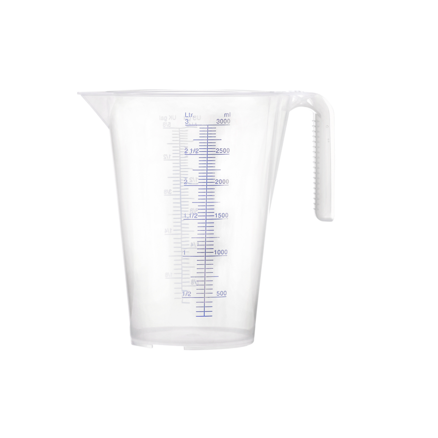 Vrč z merilnikom na obeh straneh z dvignjenimi in natisnjenimi skalami za litre in galone